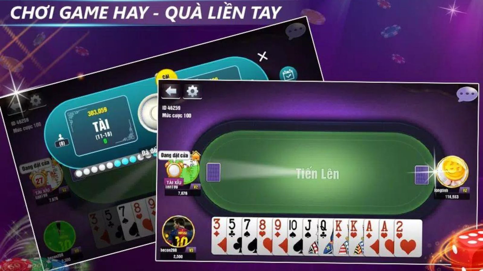 • Chẳng hạn như: tiến lên miền Nam, Tiến lên miền Bắc, Sâm Lốc, Phỏm, Chắn,… Đây đều là những tựa game mang lại cảm giác hưng phấn, hồi hộp và mang lại trải nghiệm tuyệt vời khi giành chiến thắng.